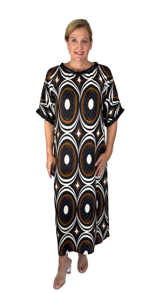 The Charlie silk caftan dress is now available as a silk and sequin caftan. Multiple neckline options are eventually going to be available across all of my dresses (boatneck, v-neck, and the split neck (coming next) so far. I may go ahead and use my comp for the red and white Connells Charlie. It’s not my favorite style on me for my body type. It has no definition at the waist, and I need some definition personally.