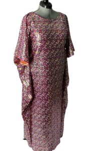 I was worried about how to get the sequins to lay flat on the seams, but with a bit of effort and an attention to detail, I removed the sequins that would be along the seam allowance and then used a rolled hem to attach the lining (flowers get all the powers) to the sequin portion of the caftan so that the dress wouldn’t be itchy. Wow! It is so cute.